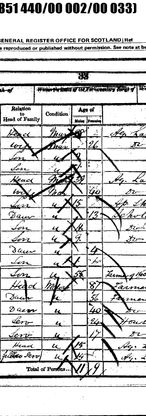 David married Margaret Short Crombie [1842-1911] on 20th November 1863 at Dumfermline Fife. They had 10 children: William [ 1864-1874] ;Amelia Finlay b;1866;David [1868-1938]; John IX b 1870; Robert [1872-1903]; Margaret b. 1875; Wilhelmina [1878-1906]; Joan b 1880 and Eliza Thomson b. 1882. David and Margaret were living in Gardeners St Dumfermline in 1871 with an Andrew Crombie Railway porter a boarder. Perhaps Margaret's brother? In 1881 the family lived at 36 Viewfield Place Dumfermline and David is a dairyman. Margaret's father David is living with them and there is a daughter Joan.